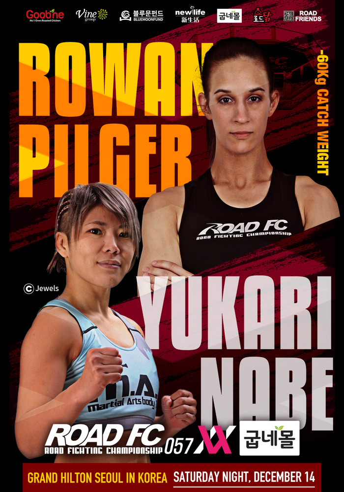 [부자동네타임즈 김인수기자] ROAD FC (로드FC)는 12월 14일 서울시 홍은동에 위치한 그랜드 힐튼 서울에서 굽네몰 ROAD FC 057 XX를 개최한다. 이 대회에서 ‘원어민 선생님’ 로웬 필거가 일본의 유카리 나베(32, PARAESTRA MATSUDO)와 –60kg 계약 체중으로 대결한다.