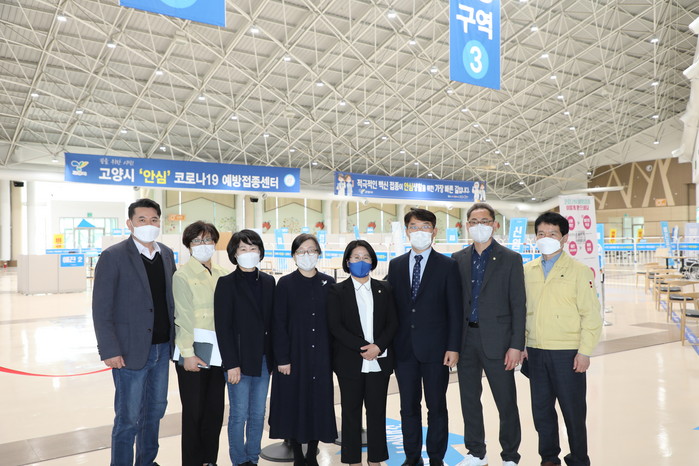[부자동네타임즈 김인수기자] 고양시의회 문화복지위원회(위원장 정봉식)는 3월 31일 고양꽃전시관 내 설치한 고양시 안심 코로나19 예방접종센터를 방문하여 백신접종 전체 상황을 살피고 관계자들을 격려했다.