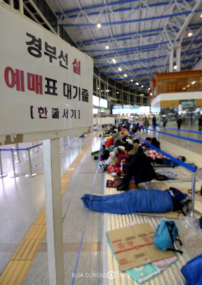 설 명절 승차표 예매가 시작된 9일 밤 서울 중구 서울역 대합실에서 시민들이 밤을 새워가며 예매 개시를 기다리고 있다. 코레일은 올해 설 열차 승차권 예매를 오는 10, 11일 양일 간 홈페이지와 지정된 역 창구, 승차권 판매 대리점 등을 통해 실시한다고 밝혔다. 10일에는 경부선, 경전선, 충북선, 동해선 승차권 예매가 진행되며, 11일에는 호남선, 전라선, 장항선, 중앙선 승차권 예매가 진행된다. 2017.01.09.