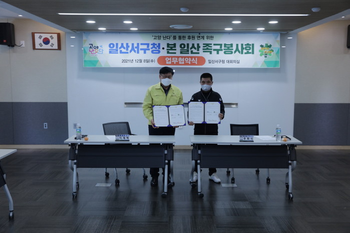 [부자동네타임즈 김인수기자] 고양시 일산서구청(구청장 이재혁)과 본일산 족구봉사회(회장 우화식)가 지난 8일 관내 복지사각지대 및 저소득 가구의 지속적 후원을 위해 업무 협약식을 가졌다.