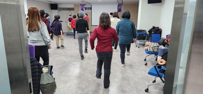 오전에 실시한 (재)대한걷기연맹 이강옥 회장(상지대학 명예교수)의 올바른 걷기 방법에 대한 이론 강의를 토대로 오후에는 생활 속에 적용할 수 있는 걷기 실습을 진행했다.