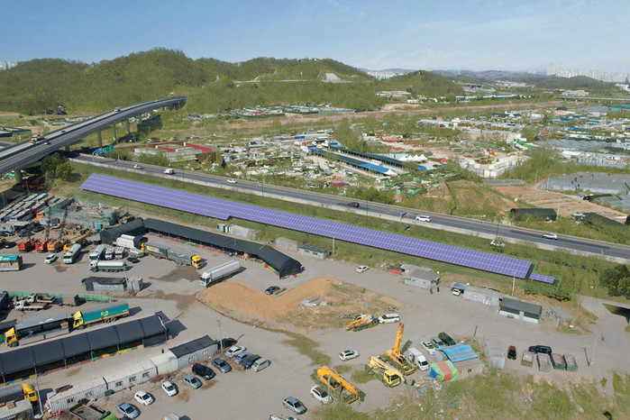 [사진설명] 현천동 제2자유로 경사면에 설치된 태양광발전 시설.