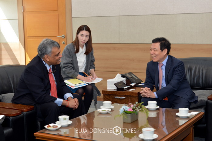 윤장현 광주광역시장은 21일 오전 시청 3층 접견실에서 마힌드라 코리아 딜립 순다람 사장을 접견하고 전기자동차 등 상호 관심 분야를 논의했다.