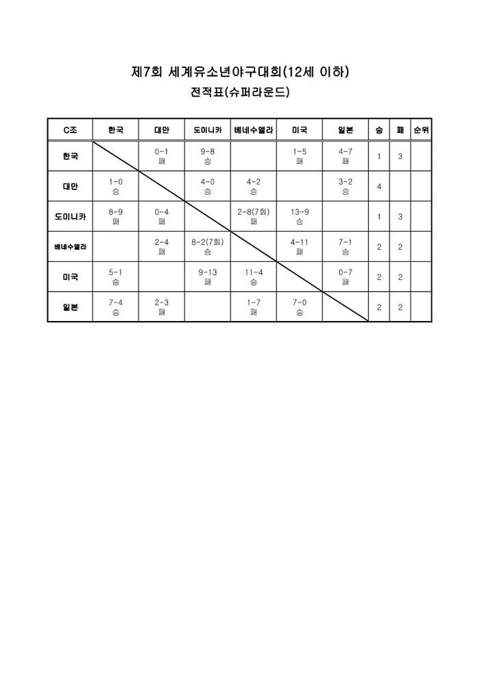 내일 베네수엘라와의 슈퍼라운드 마지막 경기를 남겨두고 있는 대표팀은 결승 진출은 좌절됐지만, 베네수엘라를 꺾을 경우, 2승 3패로 도미니카와 베네수엘라에 승자승으로 우위를 차지해 3-4위 결정전에 진출할 가능성은 남아 있다. 이 경우, 일본과 미국의 경기 패자와 3-4위전을 치르게 된다.