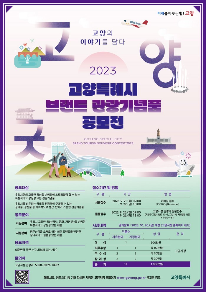시는 9월 21일부터 22일 18시까지 이메일로 신청서를 접수를 받는다. 물품 접수는 신청서 제출자에 한하여 9월 25일부터 26일까지 고양시청 관광과로 방문해 제출하면 된다.