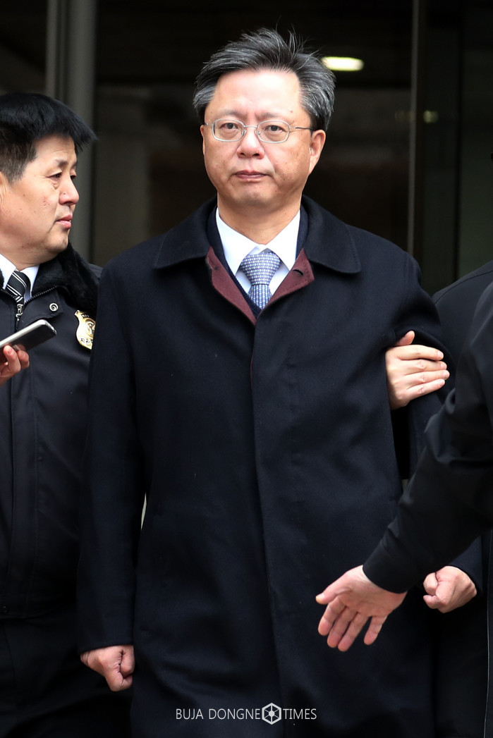 오전 10시30분께 열린 구속 심사는 약 5시간30분 동안 진행돼 오후 4시께가 돼서야 종료됐다. 검찰과 우 전 수석 측은 심사에서 구속 여부를 두고 치열한 법정 공방을 벌였다.