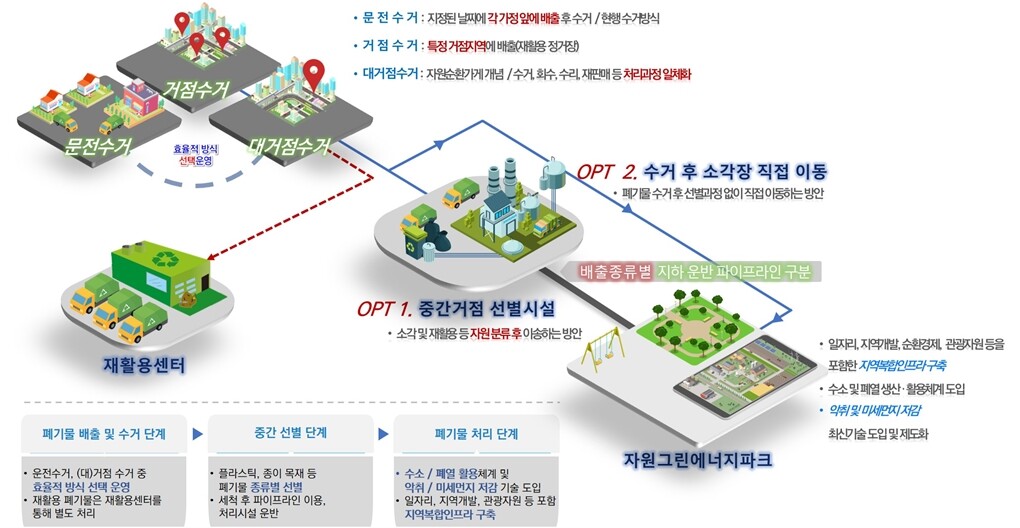 시는 폐기물처리시설 주변 지역에 일자리를 창출하고 지역 명소의 기능을 갖춘 복합 기반시설(인프라)을 구축한다. 복합 기반시설은 소각 과정 중 발생한 폐열 및 수소에너지로 운영되어 순환 경제와 지역 경제 활성화에 기여한다.