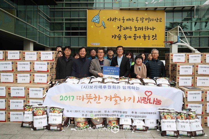 지난 17일에는 ‘사랑의 쌀 나눔’ 봉사가 열렸다. (사)보라매 후원회(회장 김종수)에서 쌀 150포(10kg)와 라면 150박스(총 6백만원 상당)를 기탁, 따뜻한 겨울을 보낼 수 있도록 저소득 소외계층에 골고루 전달됐다.