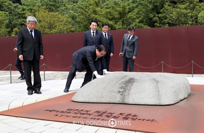 [부자동네타임즈 조영재 기자]문희상 국회의장이 7월 31일(화) 노무현 전 대통령의 고향이자 묘소가 안치되어있는 경남 김해 봉하마을을 방문하여 노 전 대통령의 묘역을 참배했다. 이번 문 의장의 봉하마을 방문은 생전에 민주주의와 협치의 정신을 강조했던 노 전 대통령을 기리고, 그 정신을 되새긴다는 의미가 있다.