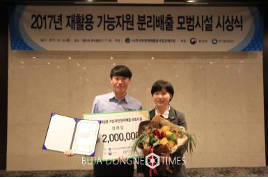 이런 노력의 결과 재활용 가능자원 분리배출 모범시설 우수사례로 인정받아 수상의 영예를 안았다.