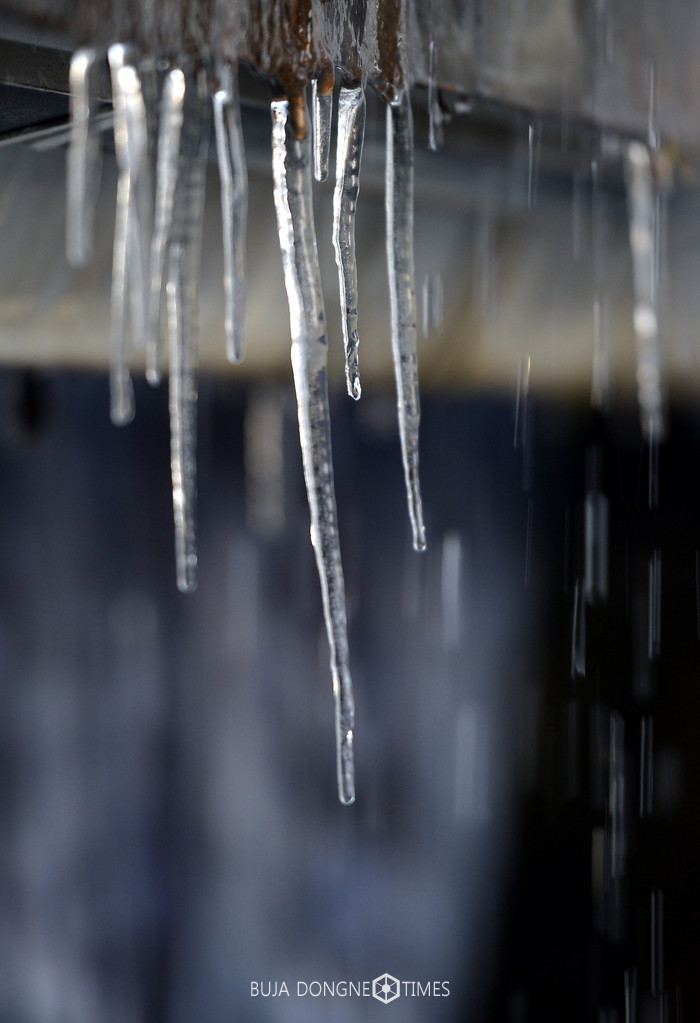 서울의 아침 최저 기온이 영하 8도를 기록하며 추위가 이어지고 있는 11일 오전 서울 중구 청계천에 고드름이 얼어있다. 2017.01.11