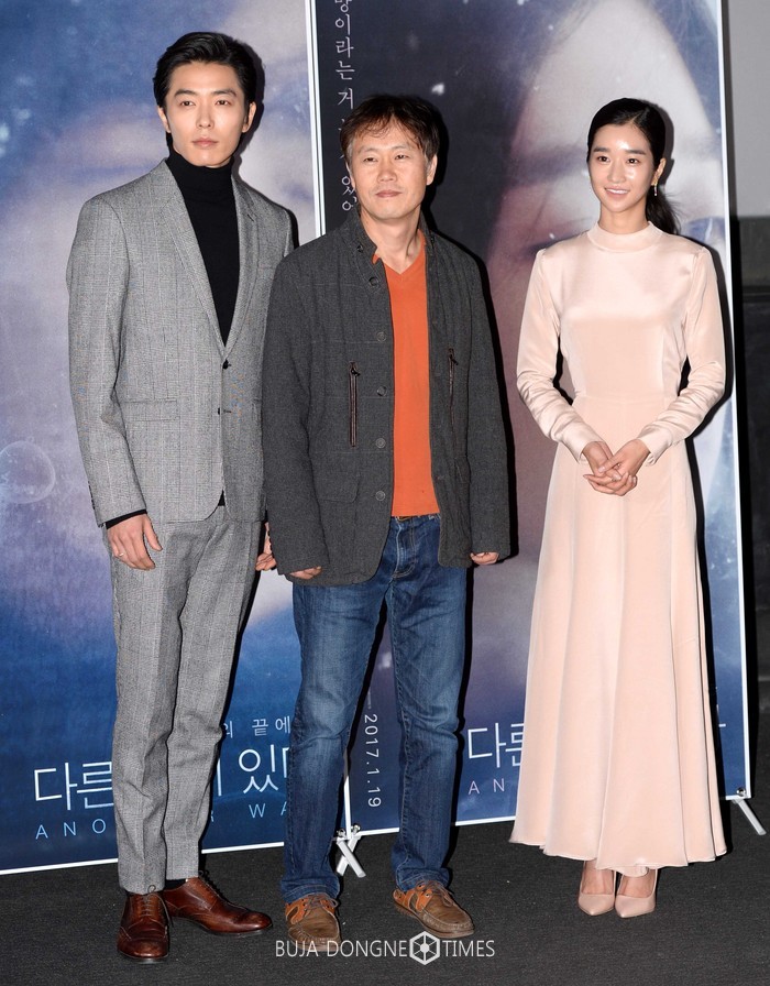 10일 서울 성동구 CGV 왕십리점에서 열린 영화 '다른 길이 있다' 시사회 및 기자간담회에서 배우 김재욱(왼쪽부터), 조창호 감독, 배우 서예지가 포즈를 취하고 있다. 2017.01.10.
