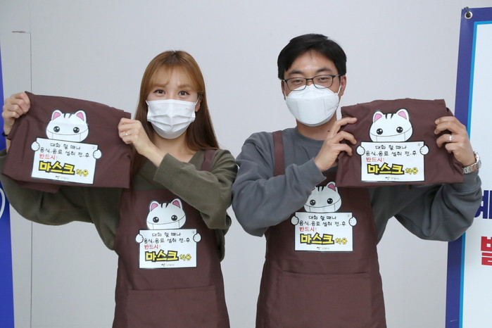 앞치마에는 ‘대화할 때나 음식‧음료 섭취 전‧후 반드시! 마스크 착용’이라는 강화된 방역수칙의 핵심 메시지를 넣어 마스크 착용에 대한 시민의 관심을 높였다. 그리고 앞치마별로 번호를 넣어 종사자들이 지정된 번호의 앞치마를 착용할 수 있도록 해 근무복 공유로 인한 종사자 간 감염 확산도 사전에 차단한다.
