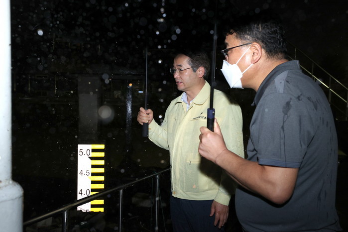 [사진설명] 이동환 고양시장이 강매배수펌프장을 현장 점검하고 있다. (2022.8.9.)