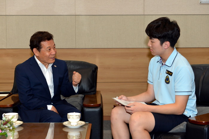 [광주=부자동네타임즈 손권일 기자] 행정가를 꿈꾸는 용기 있는 고교생이 윤장현 광주광역시장을 만나 장래희망에 대한 고민을 나눴다.