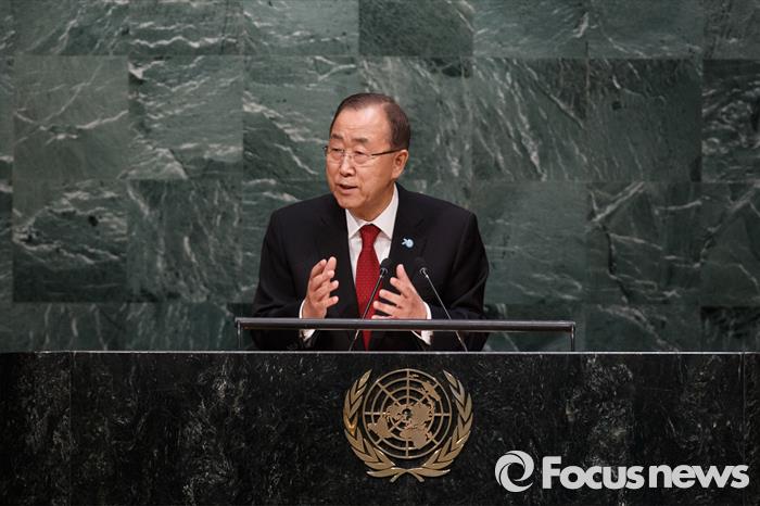 | △ 반기문 유엔 사무총장이 유엔총회에서 연설하는 모습. <사진제공=포커스뉴스> |