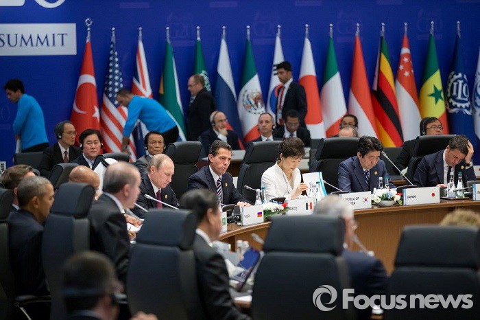 | △ 박근혜 대통령과 주요 20개국(G20) 정상들이 회의를 열고 있는 모습. <사진제공=포커스뉴스> |