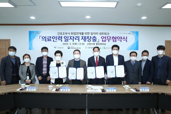 [부자동네타임즈 김인수기자] 고양시(이재준 시장)는 지난 5일 고양시청 열린회의실에서 고양고용노동지청(김연식 지청장), 고양시의사회(심욱섭 회장), 대한간호조무사협회(홍옥녀 회장) 간 의료인력 재취업 플랫폼을 구축하기 위한 업무협약을 체결했다.