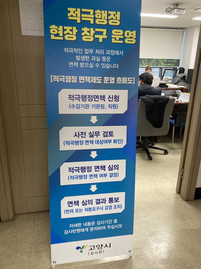 [부자동네타임즈 김인수기자] 고양시는 "이달 9일부터 시작된 도로관리사업소 종합감사에서 적극행정 현장창구를 운영하고 있다."고 밝혔다.