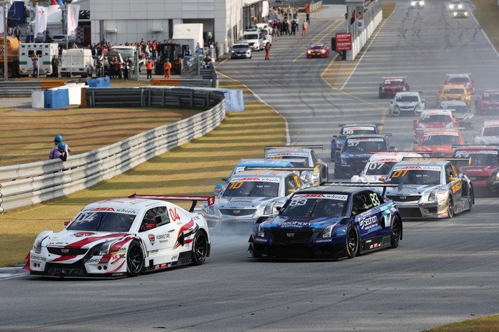 [사진설명] 엑스타 레이싱팀의 정의철(04번)과 서한 GP 김중군(83번), 아트라스BX 모터스포츠 조항우(10번) 등이 지난 시즌 최종전 결승 레이스에서 선두 자리를 다투고 있다.