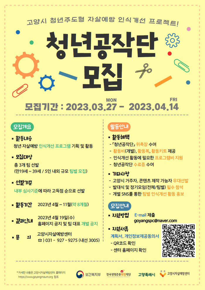 신청과 관련된 자세한 사항은 고양시자살예방센터와 홈페이지에서 확인할 수 있다.