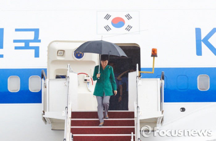 | △ 박근혜 대통령이 ASEAN+3 정상회의 참석을 위해 20일 오후 말레이시아 쿠알라룸푸르 국제공항에 도착, 계단에서 내려오고 있다. <사진제공=청와대> |