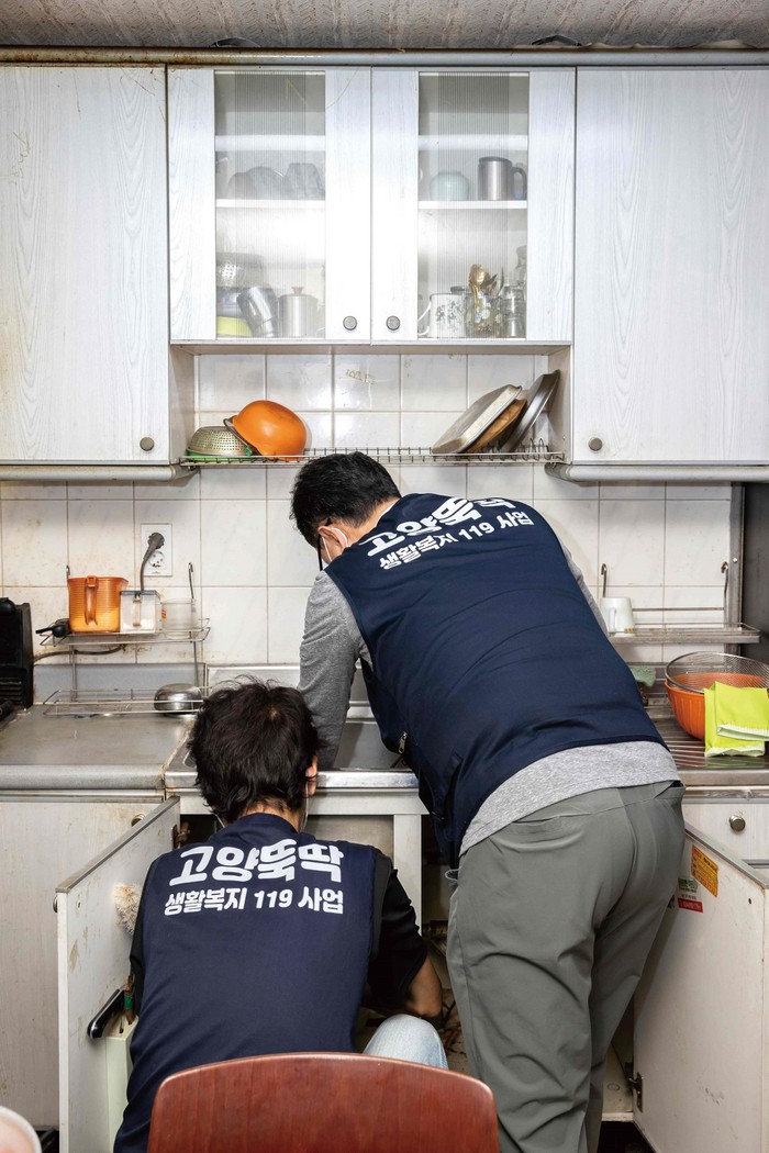 고양뚝딱 사업은 취약계층을 대상으로 △전기(전등, 스위치) 교체 △단열(문풍지, 에어캡 설치) △소독・방역 △수도꼭지, 샤워기 설비 교체 △문고리 수리・교체, 못 박기 등 집 안에서의 간단한 생활불편 해결을 돕는 서비스다. 작년 한 해만 771가구에 2,091건 수리서비스를 제공하는 등 날로 큰 호응을 얻고 있다.