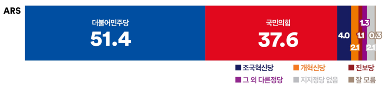 권역별 지지율을 살펴보면, ‘더불어민주당’은 호남권에서 67.8%의 압도적인 지지를 받았고, 서울(49.1%), 경인권(55.2%), 충청권(50.3%)과 강원·제주(51.0%)에서도 ‘국민의힘’을 앞섰다. 반면, ‘국민의힘’은 대구·경북에서 51.9%의 지지를 얻으며 유일하게 강세를 보였다.
