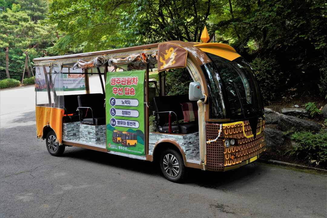 행주관람차는 문화체육관광부 공모에서 선정된 열린관광지 환경조성 사업의 일환으로 제작됐다. 행주산성 내를 순환하는 2대(6인승, 9인승)의 전기차로, 휠체어 탑승 공간이 마련돼 있어 노약자, 장애인, 영유아 동반객, 교통약자의 행주산성 관광 접근성이 한층 개선됐다.