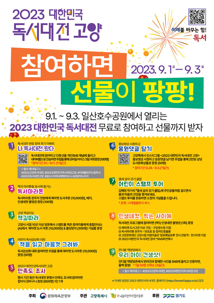 ‘2023 대한민국 독서대전 고양’ 다양한 이벤트·선물 가득.