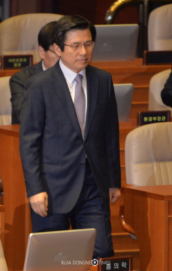 6일 오전 서울 여의도 국회 본회의장에서 열린 제4차 본회의에 황교안 대통령 권한대행 국무총리가 참석하고 있다. 2017.02.06.