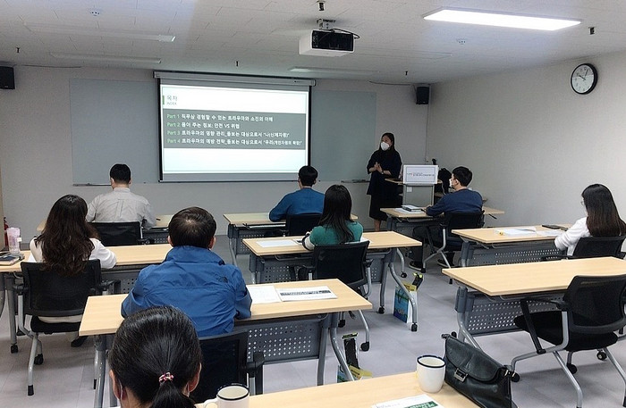 트라우마 관리 교육은 한국트라우마교육연구원 김진희 책임연구원이 맡았다. 김진희 연구원은 ‘노인보호전문기관 사례관리실무자 간접 외상 스트레스와 소진관리’ 란 주제로 실무자들의 스트레스와 불안을 완화하는 기법을 강의했다.
