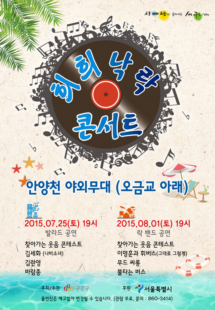 [부자동네타임즈 심귀영 기자] 구로구(구청장 이성)가 25일과 내달 1일 ‘희희낙락 콘서트’를 개최한다.