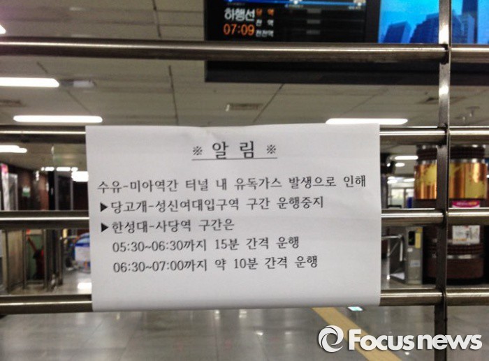 | △ 26일 새벽 지하철4호선 미아역에서 발생한 화재로 출근길 성신여대-당고개 일부 구간에서 지하철이 제한 운행돼 출근길 시민들이 큰 불편을 겪었다. <사진제공=독자 이준택> |