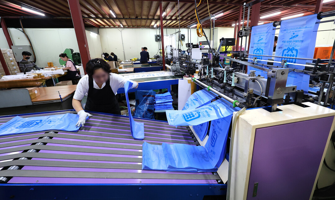 중동 전쟁 장기화로 나프타 등 원료 수급에 어려움을 겪고 있는 가운데 2일 인천 미추홀구의 한 비닐봉투, 종량제 봉투 제조 공장에서 종량제 봉투가 생산되고 있다. 2026.4.2