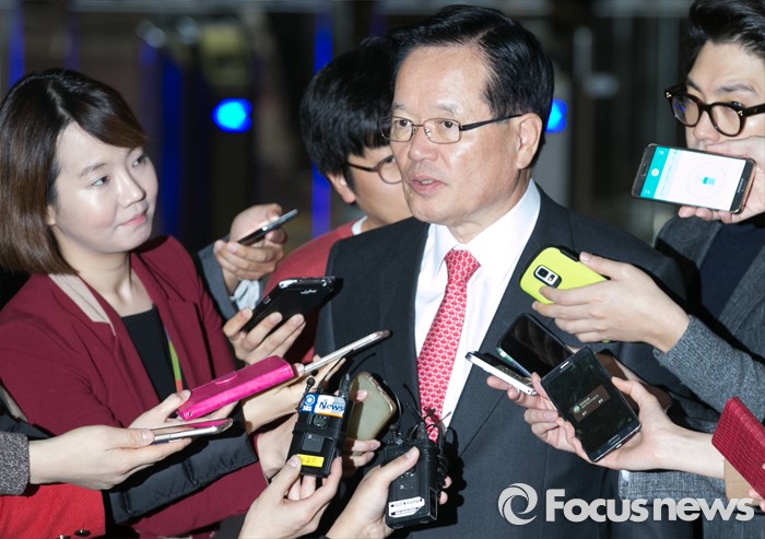 | △ 내년 총선 예비후보 등록이 시작됐지만 선거구 획정이 미정인 상황인 15일 오전 서울 여의도 국회에서 정의화 국회의장이 출근하며 취재진 질문에 답하고 있다. 정 의장은 이날 여야 지도부와 선거구 획정 등과 관련 협상을 진행할 예정이다. <사진제공=포커스뉴스> |