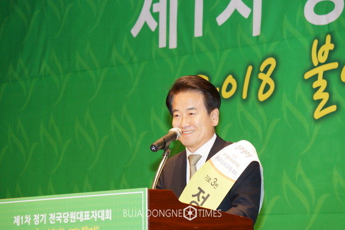 여의도에는 희망이 없다. 우리는 여의도를 벗어나야한다. 현장으로 달려가야 한다. 7년 전 희망버스에 달려갔던 한진중공업에 노회찬, 정동영이 앞장섰다. 쌍용차에 용산참사 유가족에게 수많은 약자들에 섰을 때 당시 민주당 지지율이 올랐다. 13년 전 5%를 못 넘었던 신생정당을 단기간에 30% 정당으로 만든 경험이 있다. 이 경험 사용하고 싶다. 여러분이 정동영을 선장으로 선택했으니 정동영이 앞장서서 여러분이 한 덩어리로 뭉쳐주시면 민주평화당을 대안 정당으로 이끌 것이다. 지지율 있는 존재감 있는 정당으로 만들 것을 약속드린다. 마음이 모이면 쇠도 뚫는다고 했다. 이제 고문님들과 지도부와 함께 10만 당원이 한 몸으로 전진하자.