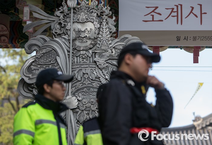 (서울=포커스뉴스) 법원에서 구속영장이 발부된 한상균 민주노총 위원장이 조계사로 피신해 신변보호 요청을 한것으로 알려진 17일 오전 서울 종로구 조계사 인근에서 경찰들이 지키고 있다.
