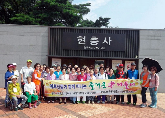 개봉2동 자원봉사협력단이 첫 번째 주자를 맡았다. 지난 1일 관내 홀몸어르신 35명을 모시고 온양온천으로 나들이 봉사활동에 나섰다. 행사에서는 온천욕, 현충사 관람 등 어르신 맞춤형 프로그램을 진행해 참여 어르신들의 높은 호응을 얻었다.