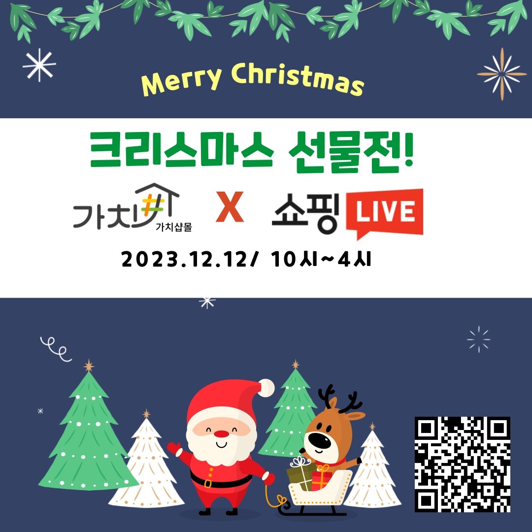 [부자동네타임즈 = 김인수 기자] 크리스마스를 앞두고 오는 12일 오전 10시부터 16시까지 ‘가치샵몰’ 실시간 방송 판매(라이브커머스)를 진행한다.