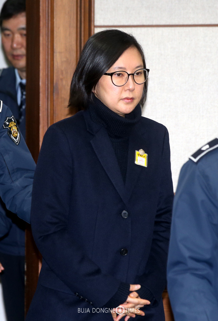 17일 오전 서울 서초구 서울중앙지법에서 장시호 김종 최서원 1차 공판이 열린 가운데 장시호가 법정에 들어오고 있다. 2017.01.17