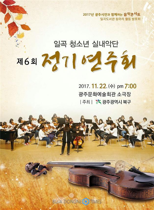 광주시 북구(청장 송광운)는 오는 22일 오후 7시부터 광주문화예술회관 소극장에서 지역 소년, 주민 등 400여 명이 참여한 가운데 '제6회 일곡도서관 청소년 실내악단 정기 연주회를 개최한다고 21일 밝혔다.