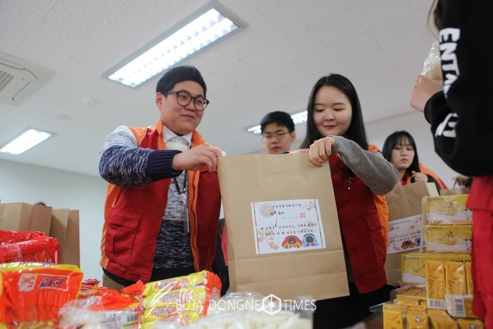 이날 봉사활동에 나선 신입사원 30여명은 거동이 불편하거나 개인적인 사정 등으로 복지관에서 식사하기 어려운 어리신 가정을 직접 찾아 도시락을 배달하는 한편 복지관 환경미화, 떡국 떡과 생필품이 담긴 선물을 전달했다.