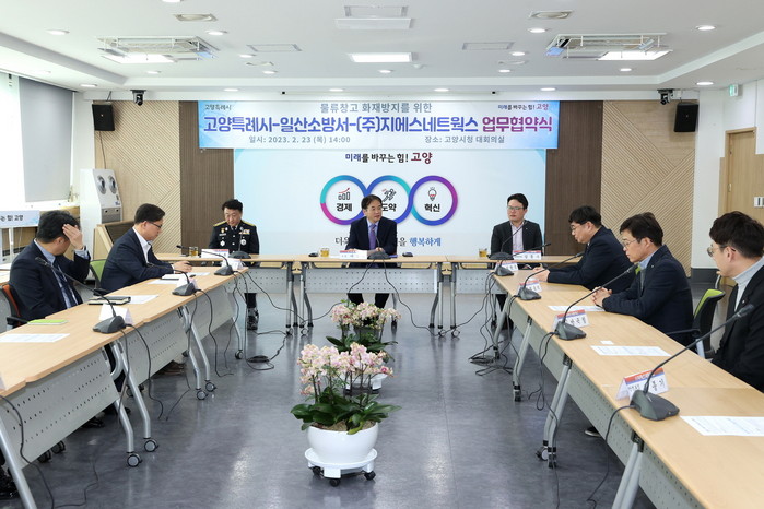 [부자동네타임즈 김인수기자] 고양특례시(시장 이동환)는 지난 23일 고양시청 대회의실에서 물류창고 화재방지 및 피해 최소화를 위해 일산소방서, ㈜지에스네트웍스 고양지점과 업무협약을 체결했다.
