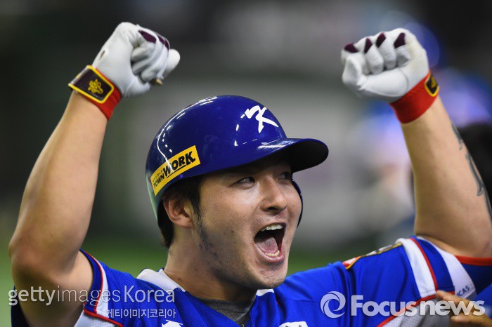 | △ <도쿄/일본=게티/포커스뉴스> 한국야구대표팀 박병호가 지난달 21일 일본 도쿄돔에서 열린 미국과의 프리미어12 결승전에서 4-0이던 4회초 3점 홈런을 때려낸 뒤 양손을 치켜들고 환호하고 있다. ⓒ게티이미지/멀티비츠 photo@focus.kr |