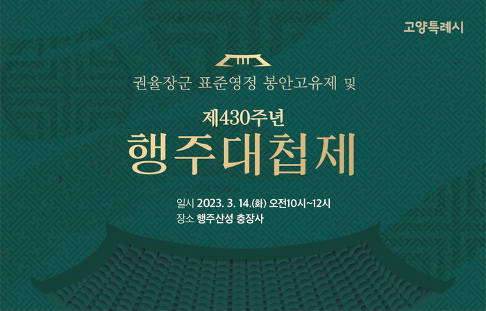 [부자동네타임즈 김인수기자] 고양특례시(시장 이동환)가 올해로 제430주년을 맞는 행주대첩을 기념하는 행주대첩제를 오는 3월 14일 오전 10시 행주산성 내 충장사에서 연다.