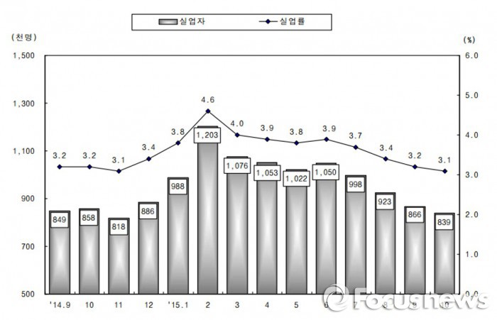 | △ 실업자 및 실업률 추이 <자료제공=포커스뉴스> |