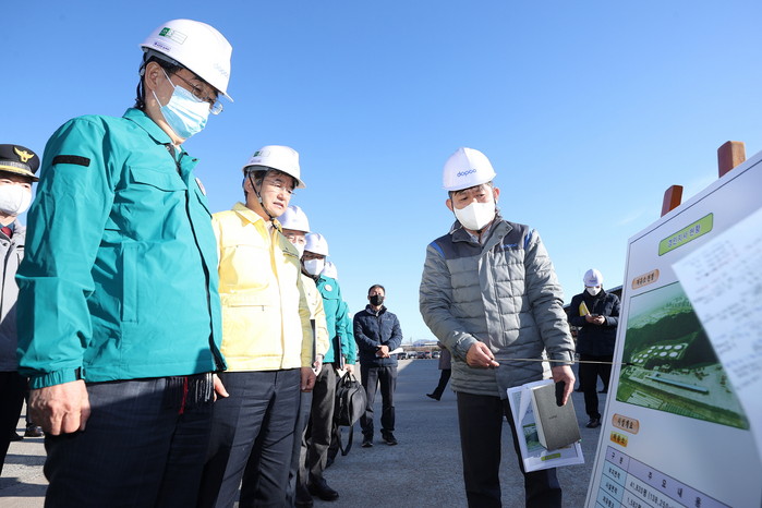 [사진설명] 이동환 시장이 한덕수 국무총리와 함께 대한송유관공사 고양 저유소에 방문해 대응 상황을 점검하고 있다. (2022.12.05.)