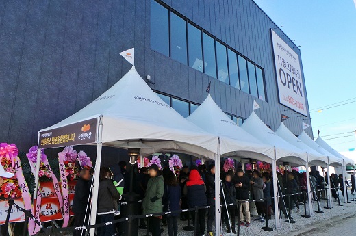 △ 대림산업 계열사인 고려개발이 분양한 e편한세상 안동 강변 모델하우스에 들어가려는 시민들이 줄을 서있는 모습. <사진제공=고려개발> |