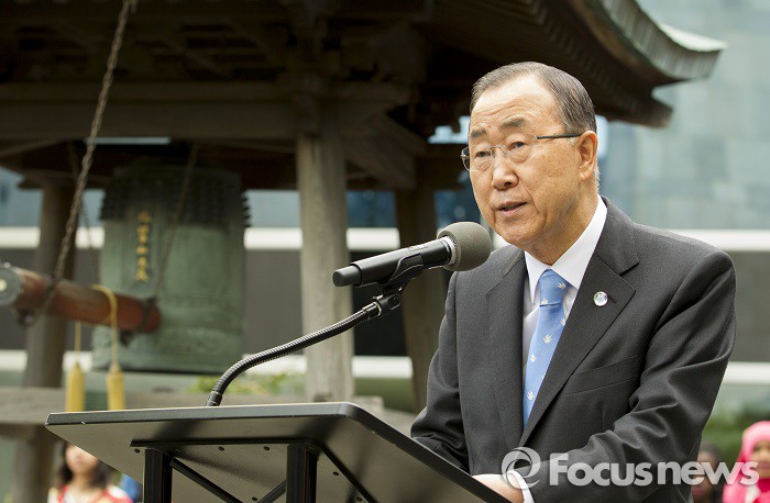 | △ 반기문 유엔 사무총장의 평양 방문 여부에 대한 보도가 엇갈리는 가운데 유엔 대변인이 "논의가 진행되고 있다"고 밝혀 주목된다. 사진은 지난 9월 21일 뉴욕 맨해튼 유엔본부에서 열린 '세계 평화의 날' 행사에서 연설하는 반기문 총장 모습. <사진제공=포커스뉴스> |